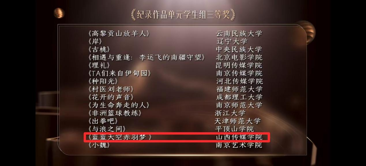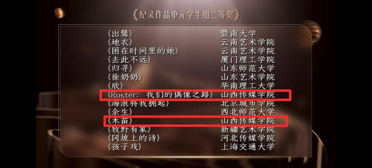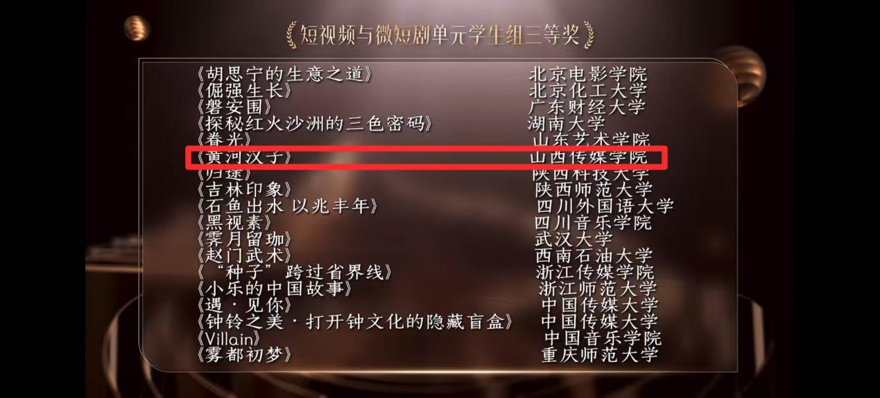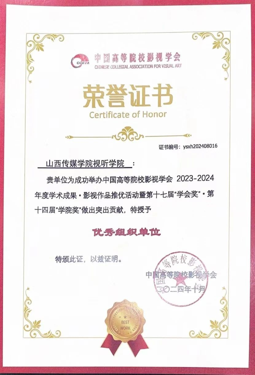 同时,我院为成功举办中国高校影视学会2023-2024年度学术成果·影视作品推优活动暨第十七届“学会奖”·第十四届学院奖做出突出贡献,被授予优秀组织单位。部分师生作品也获得了相关奖项。