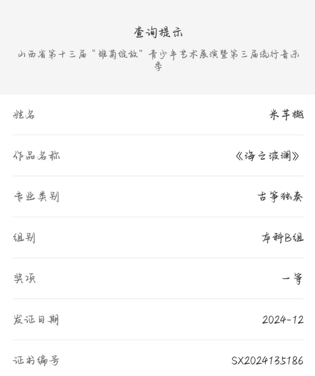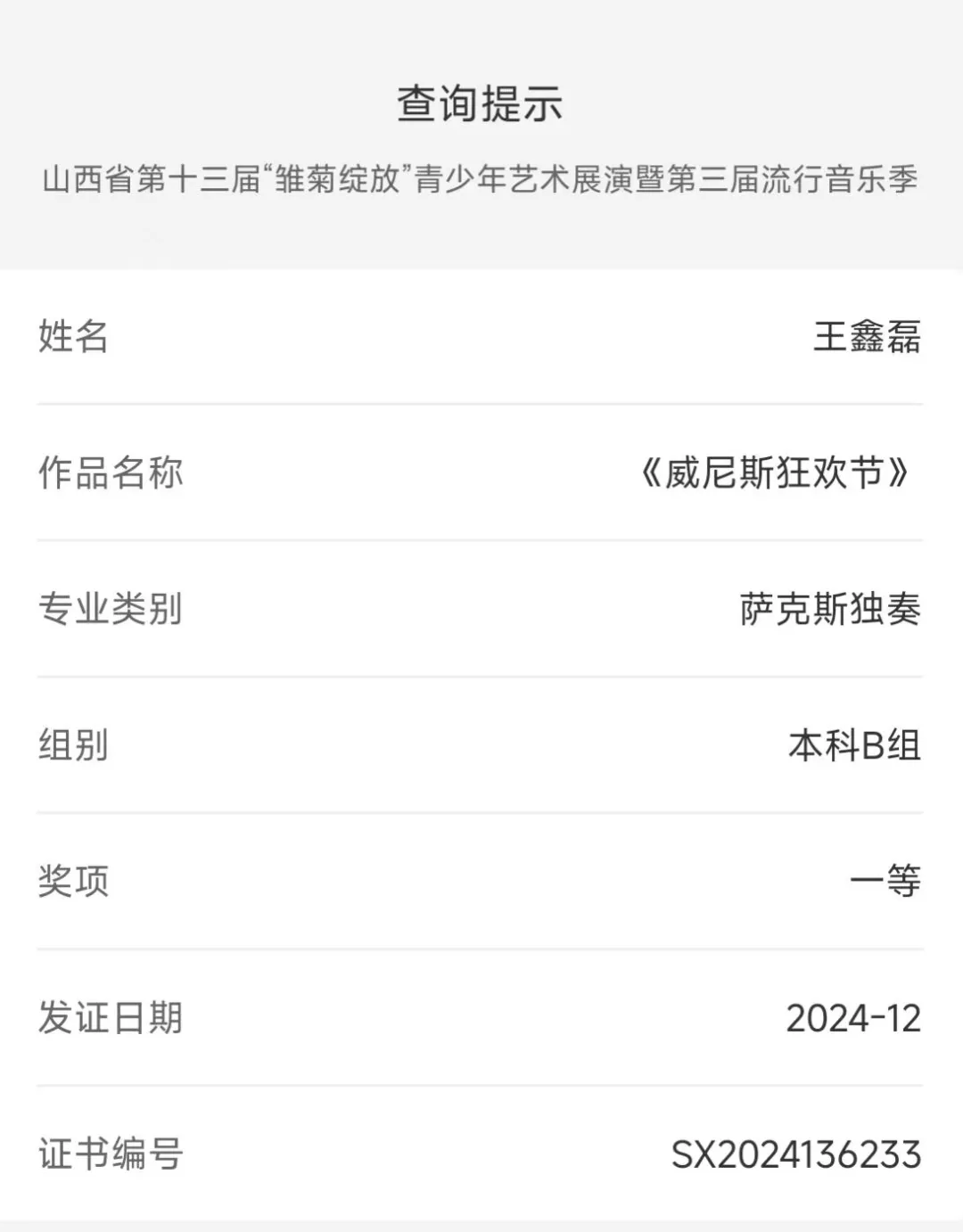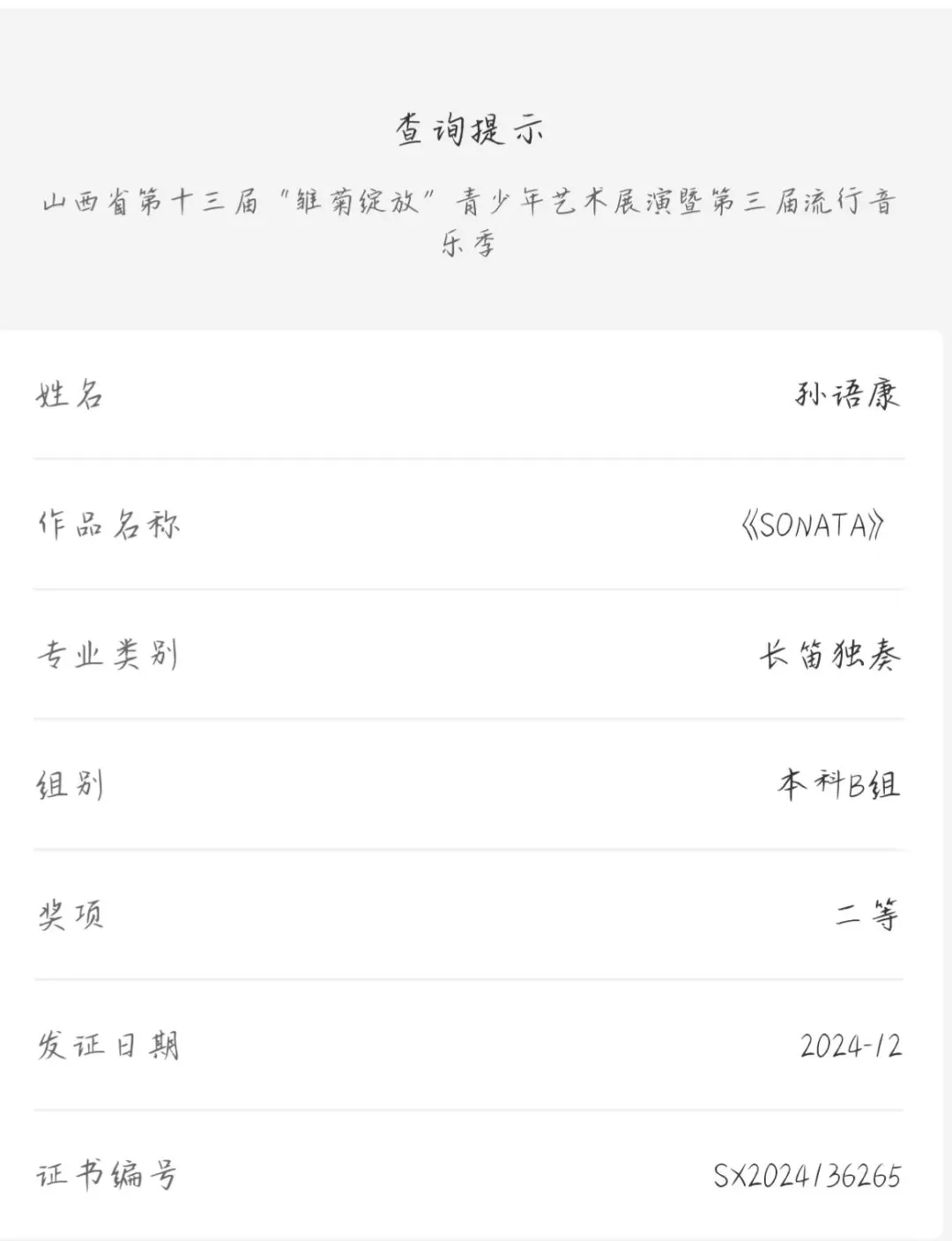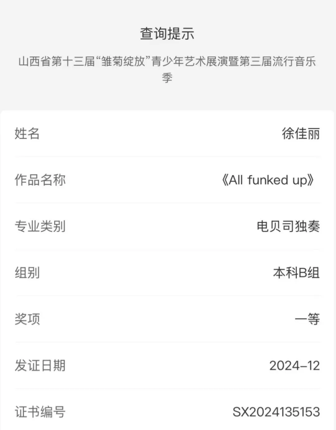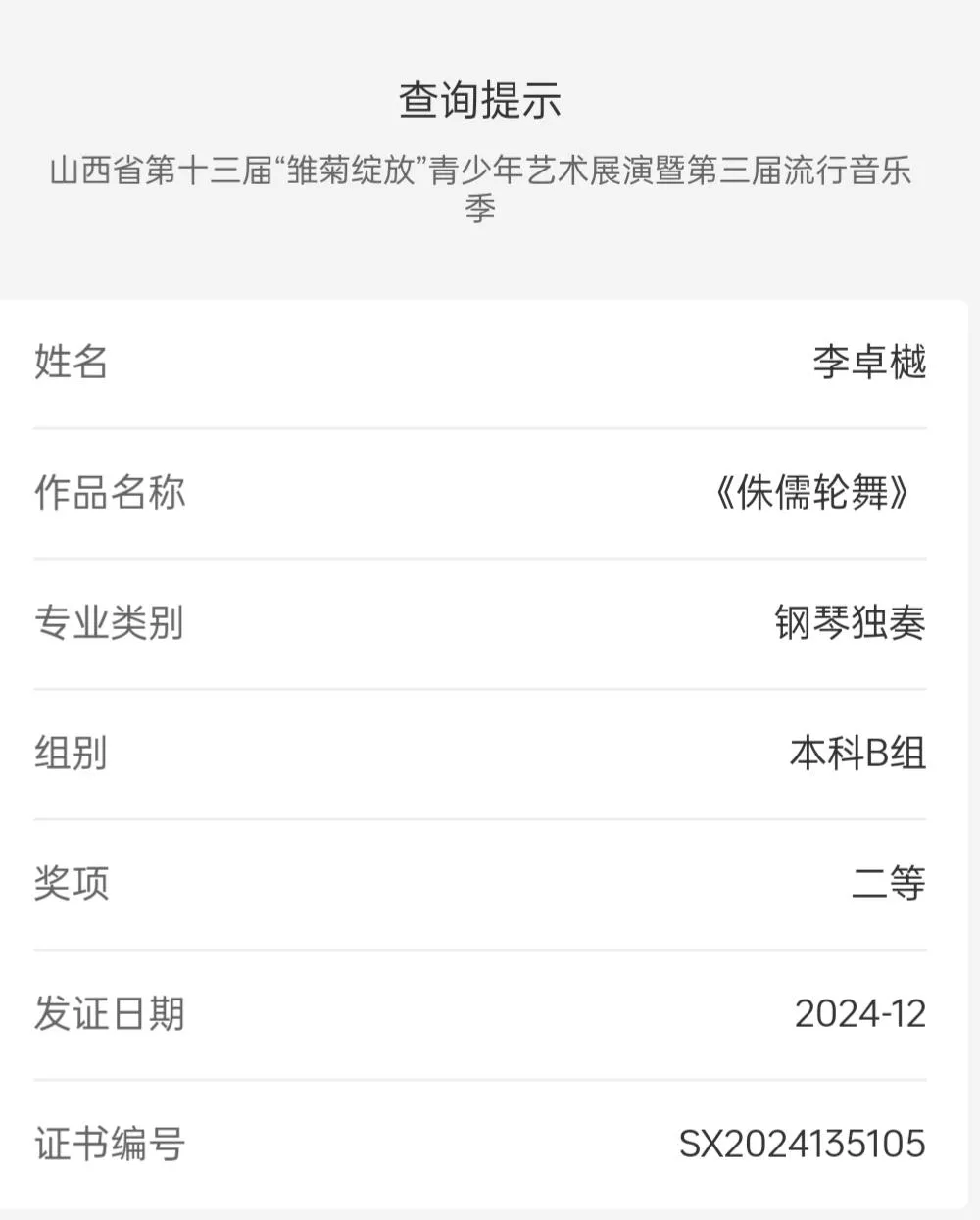 2024年12月6日,山西省第十三届“雏菊绽放”青少年艺术展演圆满落幕。我院录音艺术专业的七名学子凭借扎实的专业能力和精彩的表现,在此次比赛中大放异彩。