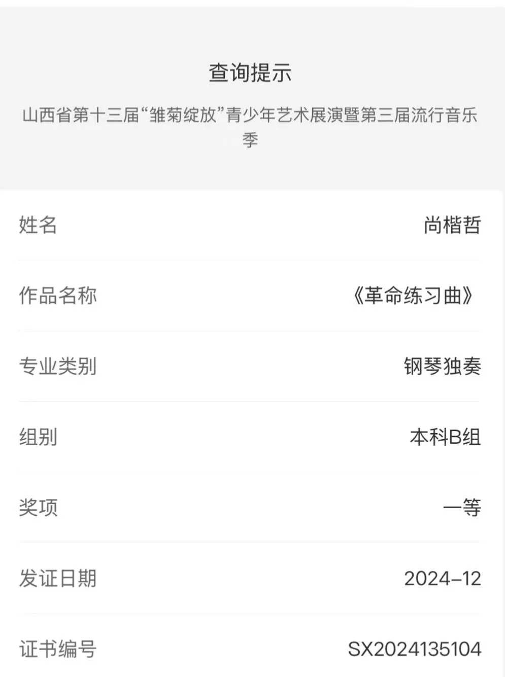 在此次赛事中,同学们无论是在技术层面的展现,还是在艺术方面的呈现,均凸显出高度的专业素养。他们凭借对音乐的深刻领悟与精湛技艺的运用,将艺术与技术完美融合,展现出令人瞩目的优秀成绩,为全院学生树立了良好的榜样。期望获奖同学能够继续坚守对艺术的热爱与初心,在艺术道路上不断超越自我,再创佳绩。同时,也期望能够激励更多同学从中获得动力,在学习与实践中勇于探索、追求卓越,为学院的发展增添光彩。