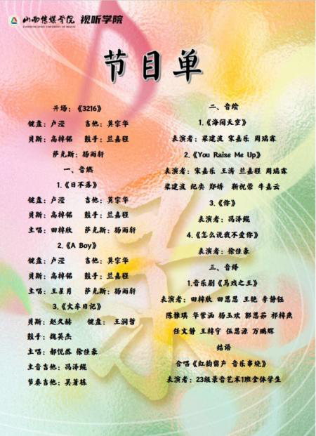 活动中所有演员以及音响扩声技术人员全部由录音艺术专业师生共同完成。