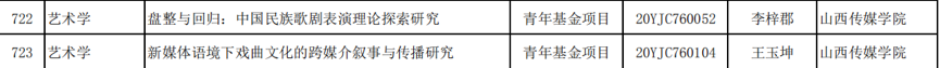 经教育部社会科学司公示完成,并于2020年3月20日正式发布的《教育部社科司关于2020年度教育部人文社会科学研究一般项目立项的通知》中,我校两位教师的科研项目获得立项。其中,由我院广播电视编导专业教师王玉坤担任课题负责人的《新媒体语境下戏曲文化的跨媒介叙事与传播研究》获得2020年度教育部人文社会科学研究青年基金项目立项。
