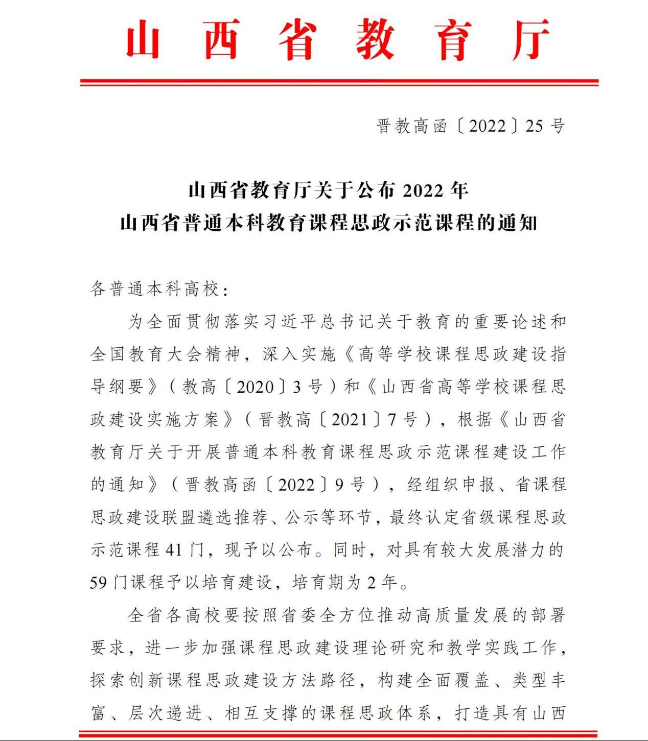 此次获批的省级课程思政示范课程,是学院深入贯彻学校的方针政策,落实立德树人根本任务,深化教学教育改革,全面提升专业课程育人成效的重大成果。