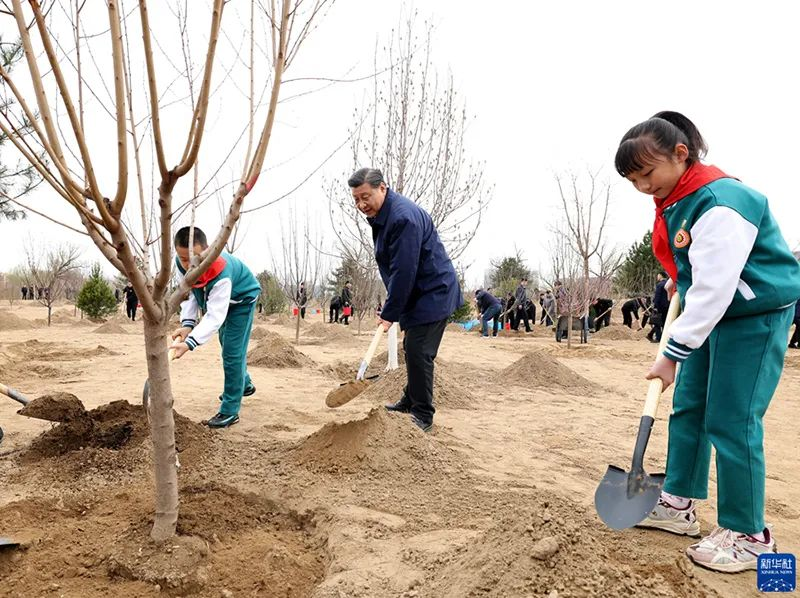 挥锹铲土、培土围堰、提水浇灌……习近平接连种下油松、碧桃、白玉兰、海棠、小叶白蜡等多棵树苗。习近平一边劳动,一边询问孩子们学习生活情况,叮嘱他们要德智体美劳全面发展,不能忽视“劳”的作用,要从小培养劳动意识、环保意识、节约意识,勿以善小而不为,从一点一滴做起,努力成长为党和人民需要的有用之才。植树现场一派繁忙景象,参加劳动的领导同志同大家一起培土浇水、亲切交流,气氛热烈。